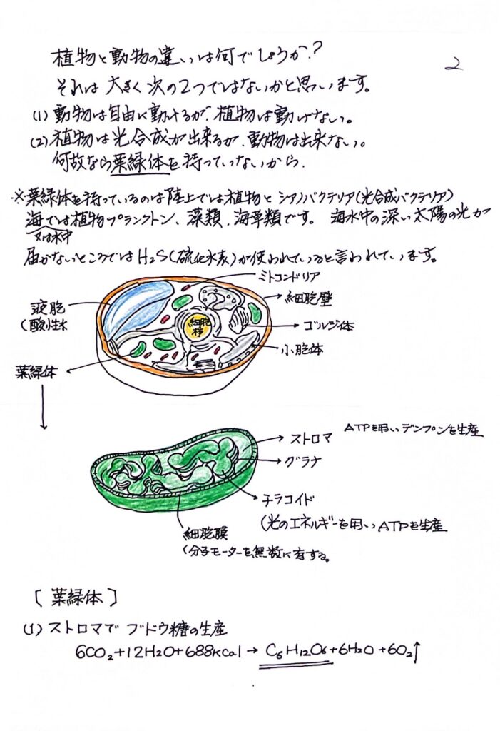 (2)植物は光合成が出来るが、動物は出来ない。